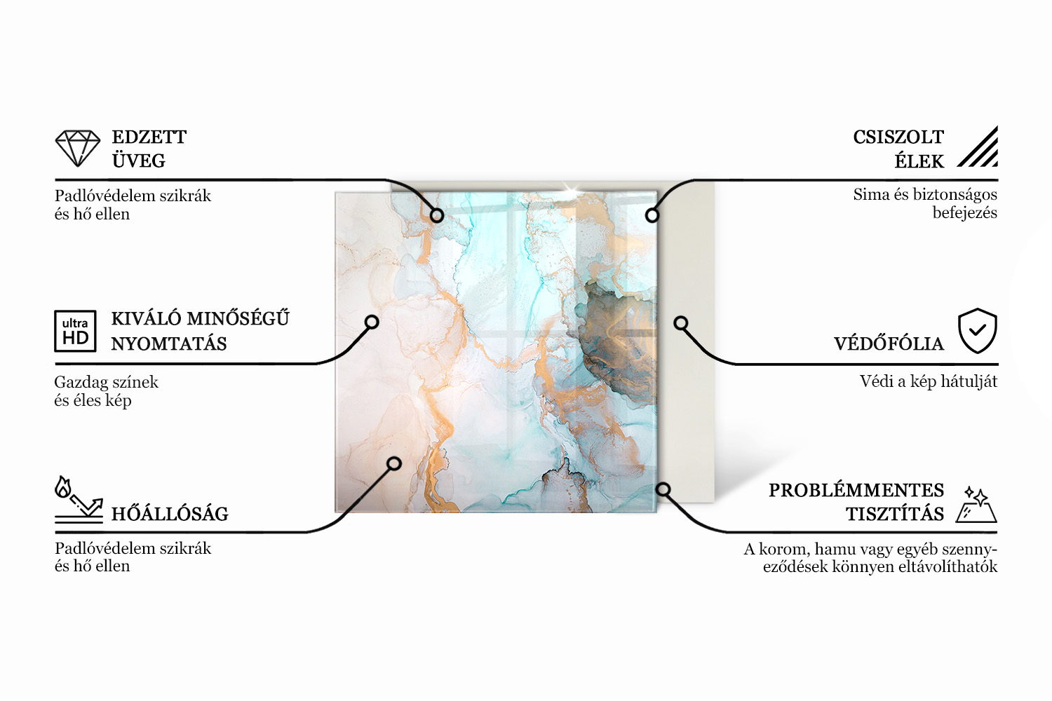 Ne aggódjon a szikrák vagy a hamu miatt. Kandalló üveg alátét termékünk (mint a tűztér előtti védelem) gátat képez, amelynek köszönhetően padlója sértetlen marad. A termék szilikon talpakkal van felszerelve, ami megakadályozza a parketta karcolódását és biztosítja a stabilitást. A Szín Bézs minta az üvegréteg alatt védett, ami garantálja a hosszú élettartamot.
